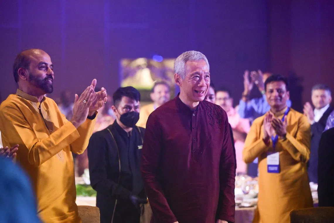 Encik Lee berucap kepada sekitar 2,000 tetamu, termasuk menteri Kabinet, Anggota Parlimen (AP), pemimpin India dan sukarelawan yang menghadiri majlis makan malam penghargaan di Marina Bay Sands.