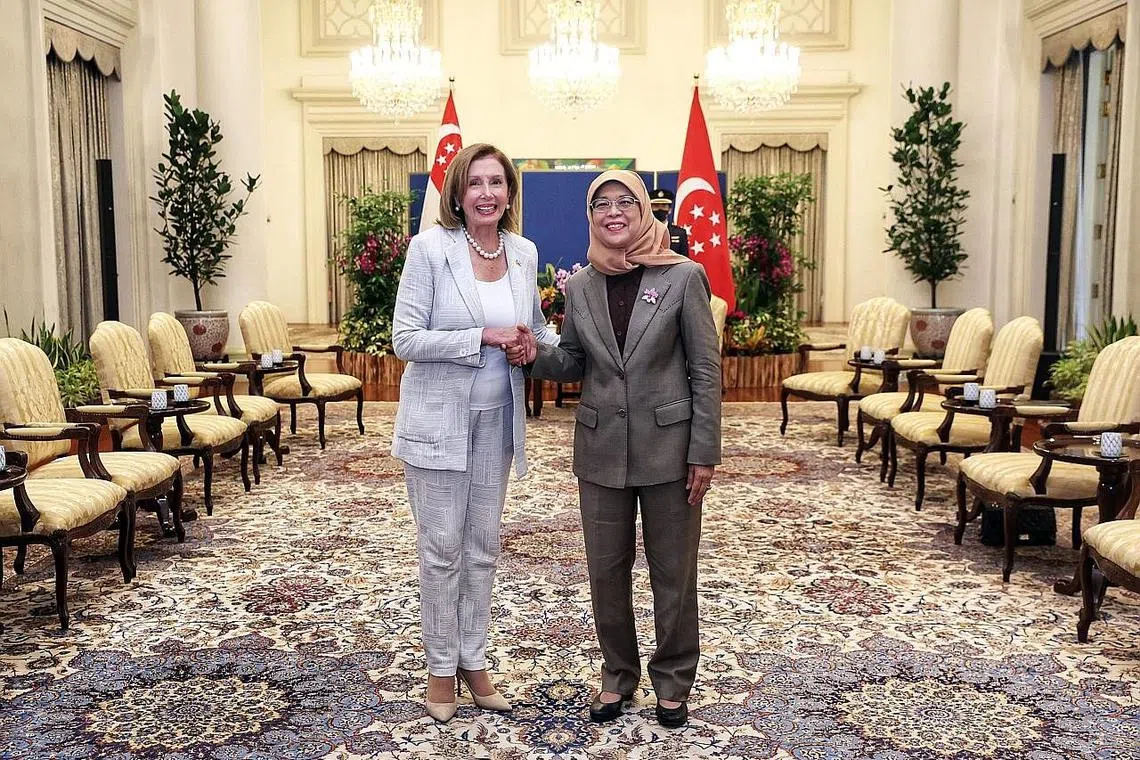 Cik Pelosi, yang berada di Singapura selama dua hari, telah bertemu dengan Presiden Halimah Yacob, Perdana Menteri Encik Lee Hsien Loong dan Menteri Ehwal Luar, Dr Vivian Balakrishnan, di Istana semalam, menurut kenyataan Kementerian Ehwal Luar (MFA).