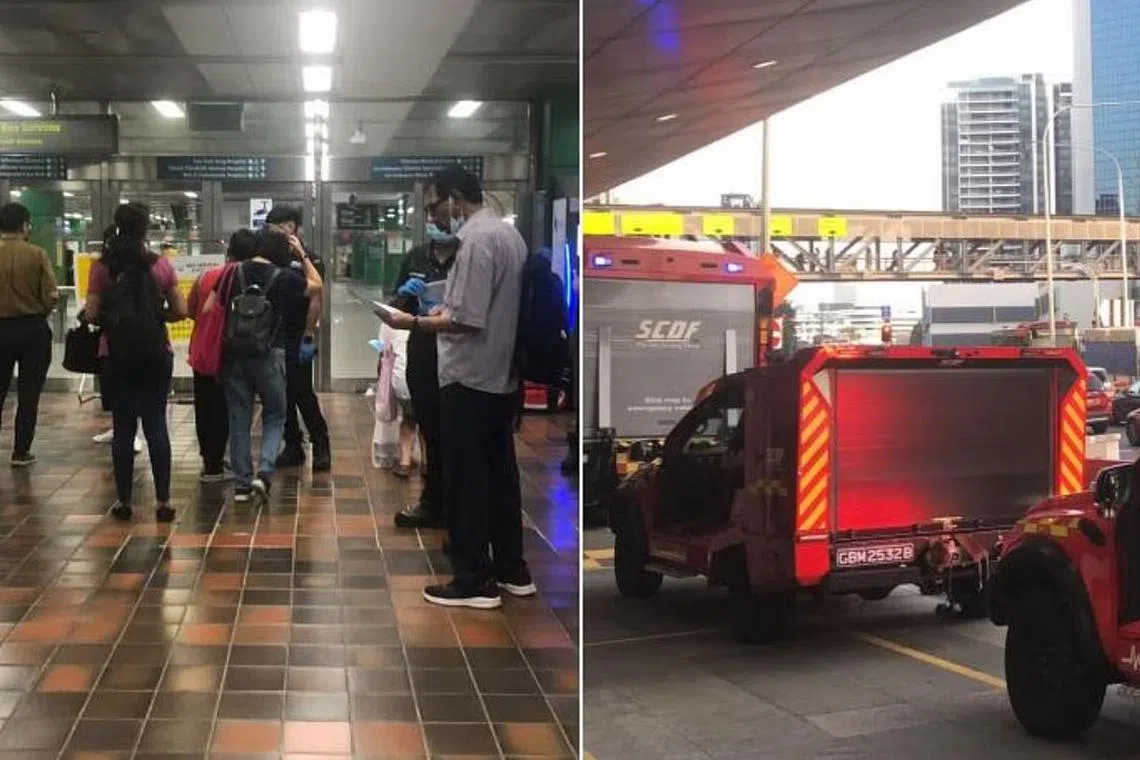 Sementara itu, beberapa kenderaan dari Pasukan Pertahanan Awam Singapura (SCDF), termasuk sebuah jentera bomba dan Kenderaan Melawan Api Ringan (LFAV), dilihat di luar stesen itu.