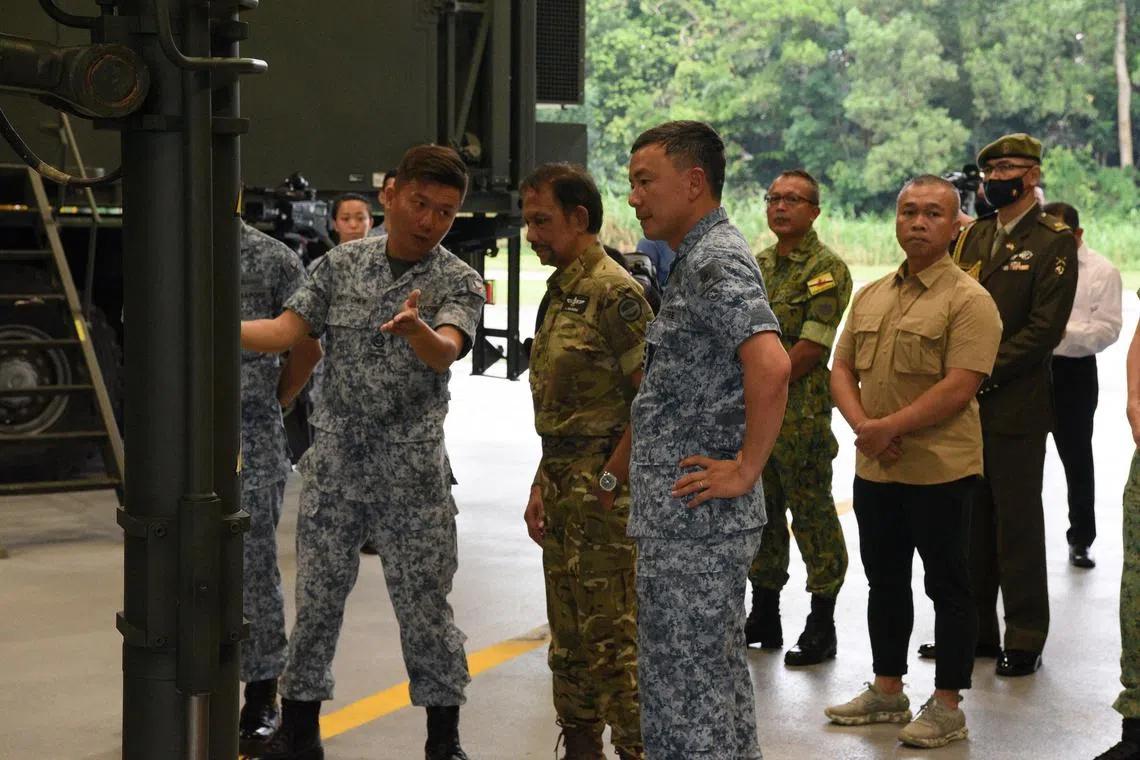 Menteri Pertahanan, Dr Ng Eng Hen, menjadi tuan rumah kepada Sultan Brunei, Sultan Hassanal Bolkiah, dalam satu lawatan di Pangkalan Udara Sembawang Angkatan Udara Republik Singapura (RSAF) tengah hari Khamis (25 Ogos). Mereka disertai Menteri Kebudayaan, Masyarakat dan Belia, Encik Edwin Tong; Panglima Pasukan Pertahanan, Leftenan Jeneral (LG) Melvyn Ong; dan Ketua Tentera Udara, Mejar Jeneral Kelvin Khong. Di pangkalan udara itu, Sultan Brunei diberi taklimat mengenai RSAF, dan menaiki penerbangan suai kenal dalam Helikopter H225M. Beliau juga melihat paparan statik Sistem Peluru Berpandu Aster 30. Sultan Brunei berada di Singapura bagi lawatan rasmi dua hari ke negara dari 24 hingga 25 Ogos 2022.