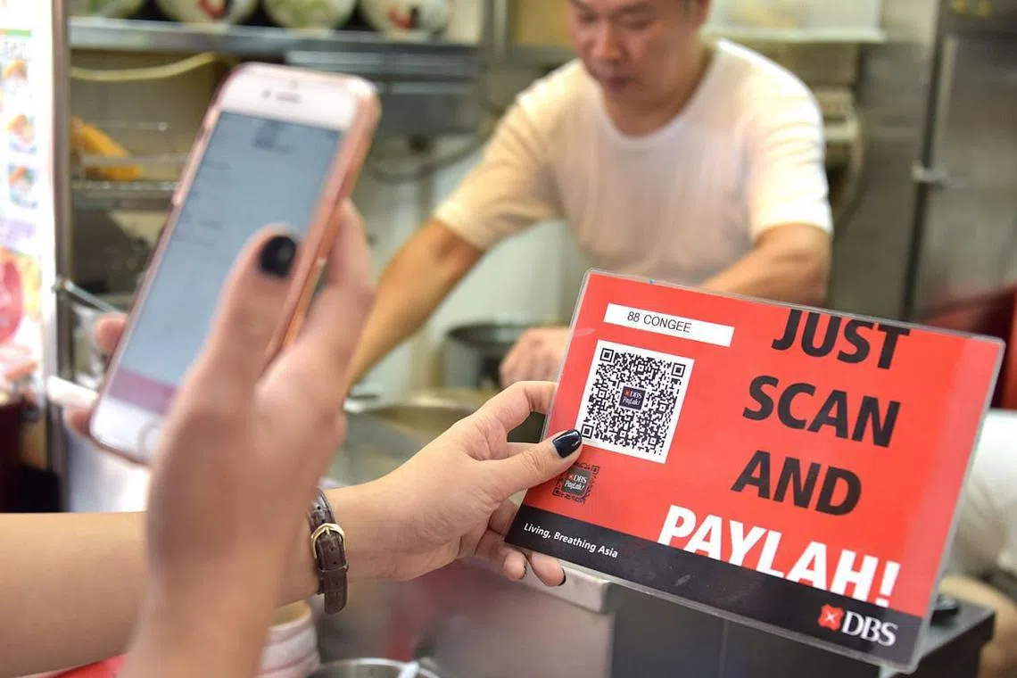 MUDAH DAN CEPAT: Penggunaan e-pembayaran seperti Paylah! (atas) dan EZ-Link kini semakin berleluasa kerana ia mudah dan lancar baik bagi pengguna mahupun perniagaan. - Foto fail -