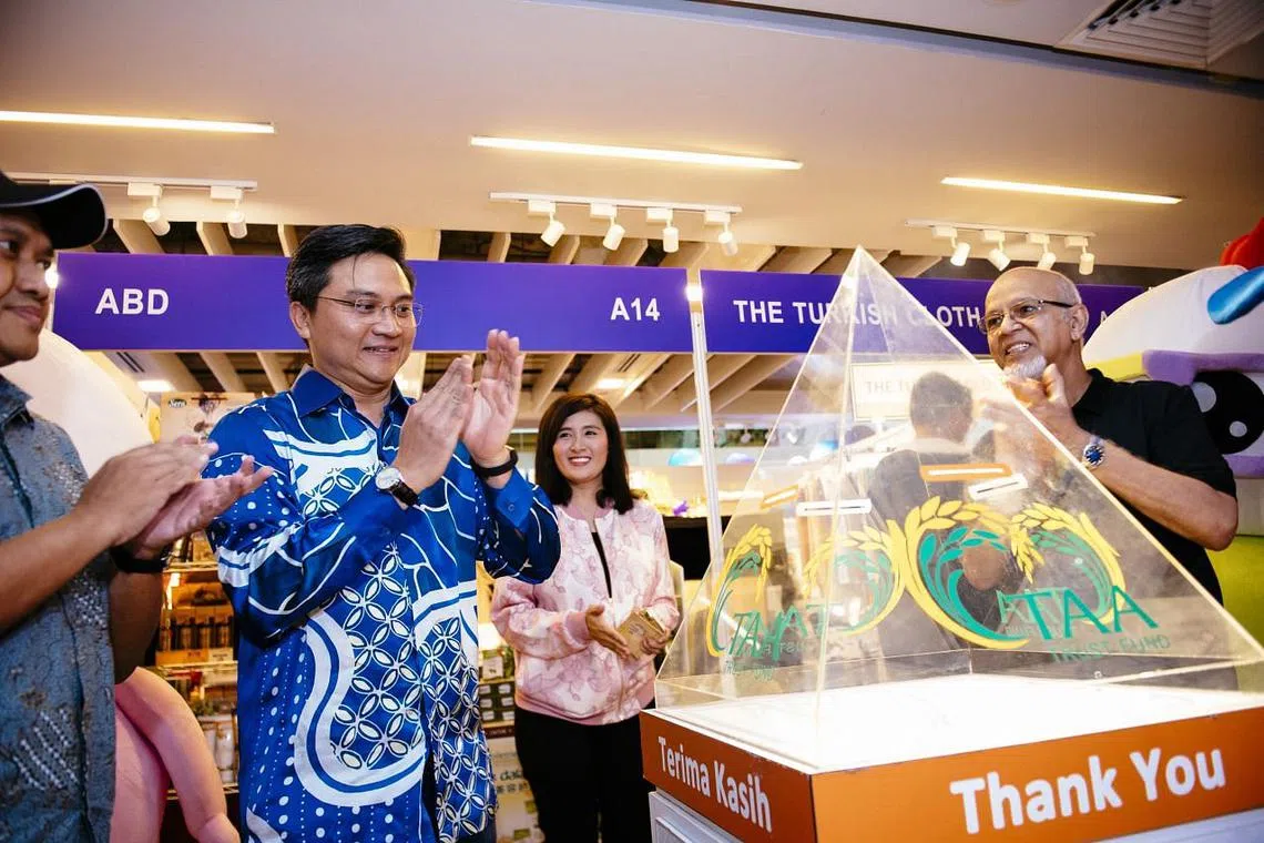 MENJELANG RAMADAN: (Dari kiri) Encik Saktiandi bersama Pengasas Bersama dan Pengarah RoseValley, Cik Dian Rasid-Heng serta Pengurus Kanan TAA, Encik Yahya Zakaria semasa majlis pelancaran tabung derma TAA di Lapangan Terbang Changi. - Foto BERITA HARIAN OLEH ALVIN HO