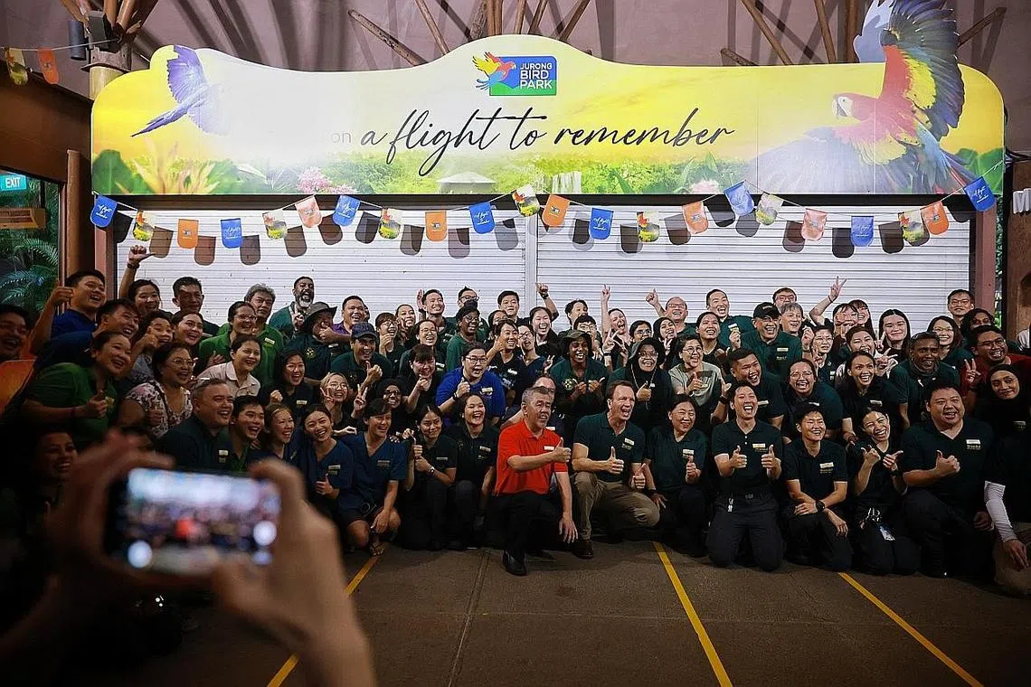 Taman Burung Jurong telah ditutup sepenuhnya mulai semalam sedang ia mengusahakan perpindahan ke rumah barunya di Mandai bernama Bird Paradise. Sempena ulang tahun hari pembukaannya yang ke-52, ikon negara itu telah mengadakan majlis penutupannya kelmarin dengan menerima seramai 2,600 pengunjung dan lebih 30,000 tetamu yang telah menziarahi taman burung terbesar di Asia itu pada lima hari terakhir dari 30 Disember lalu. BERITA HARIAN merakamkan beberapa gambar kenangan pada hari terakhirnya sebagai peringatan terhadap sebuah tarikan yang telah bertapak di sini lebih separuh abad sejak ia dibuka pada 1971.