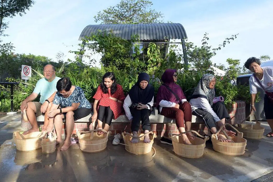 Kolam mata air panas itu, yang terletak berhampiran simpang Jalan Sembawang dan Gambas Avenue, dibuka percuma kepada orang awam, setiap hari dari 7 pagi hingga 7 malam.