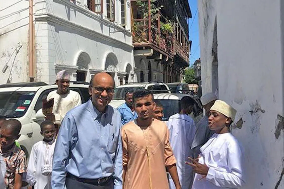Dalam kiriman di Facebook kelmarin, Encik Tharman berkata semasa di Mombasa, beliau berpeluang mengunjungi Masjid Al Mandhry yang dibina pada abad ke-16.