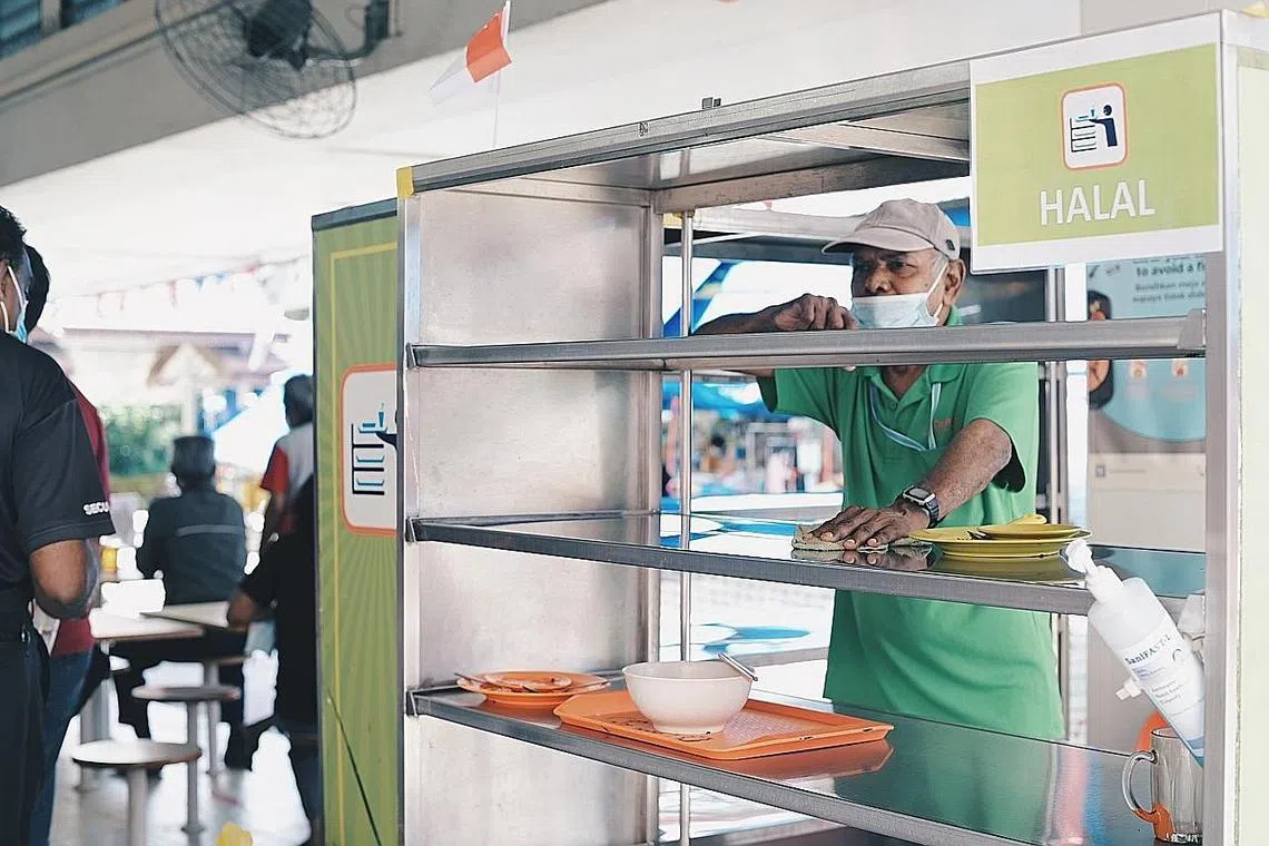 Tugas pekerja pembersihan di Pusat Penjaja Haig Road itu sekarang lebih mudah - beliau hanya perlu tunggu pelanggan meletak dulang dan pinggan mereka di tempat pengembaliannya, dan kemudian membantu menyusunnya serta meletakkannya di tong yang disediakan di depan gerai penjaja untuk dibasuh.
