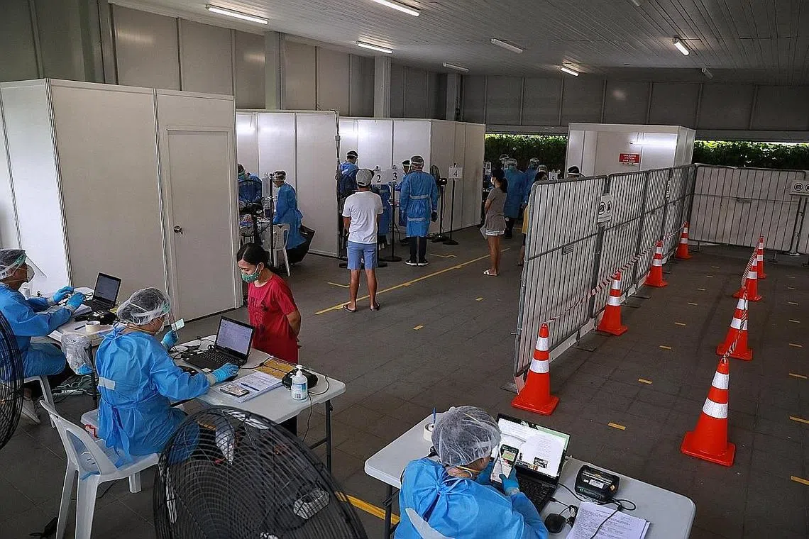 PENDUDUK yang tinggal di Blok 325A Sumang Walk di Punggol mula menjalani ujian wajib bagi Covid-19 dalam satu operasi khas selepas lapan kes jangkitan dikesan di blok itu.