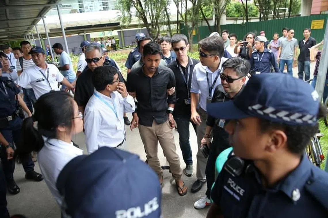 DIDAKWA: Sheikh Md Razan, 29 tahun, ditangkap di Muscat Street di Kampong Glam, di kawasan tempat tinggalnya. - FOTO ONG WEE JIN