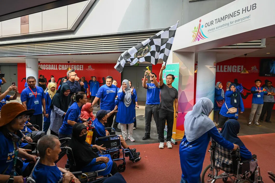 Dalam acara ini, peserta melakukan kegiatan berjalan kaki atau dengan gunakan kerusi roda mengelilingi trek di Our Tampines Hub (OTH).