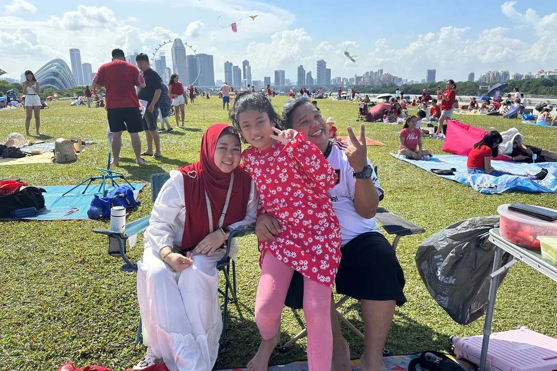 Di kawasan Esplanade pula, yang membolehkan pengunjung melihat pertunjukan penuh tertib Tembakan Kehormatan 21 Das di Sungai Singapura lewat petang Rabu, Encik Khaire Sani, 48 tahun, dan keluarganya berada di situ sejak awal petang agar dapat merakam gambaran jelas acara itu.