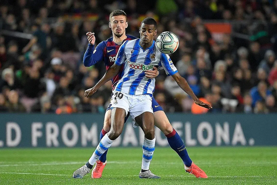 PENYERANG MUDA BERBAKAT: Alexander Isak (depan) sejauh ini telah menjaringkan tujuh gol dalam 27 penampilan untuk Real Sociedad dalam La Liga musim ini. - Foto AFP -