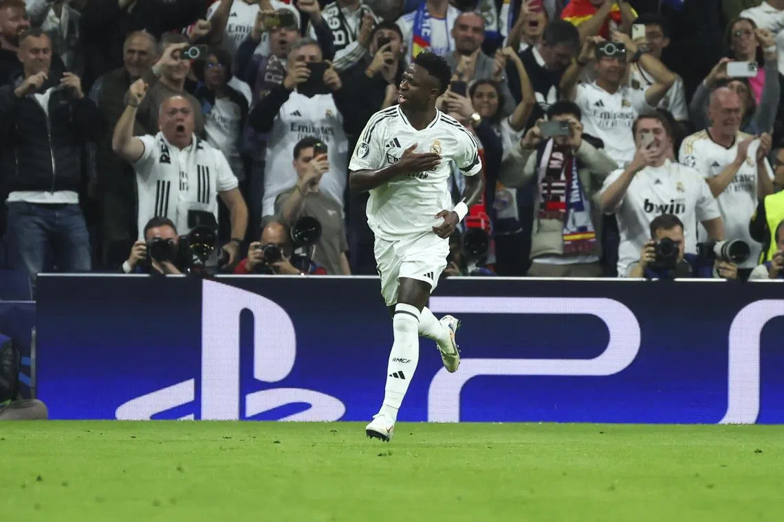 Vinicius menjaringkan satu-satunya gol Real Madrid semasa kekalahan pasukan itu kepada AC Milan 1-3 dalam Liga Juara-Juara pada 6 November.