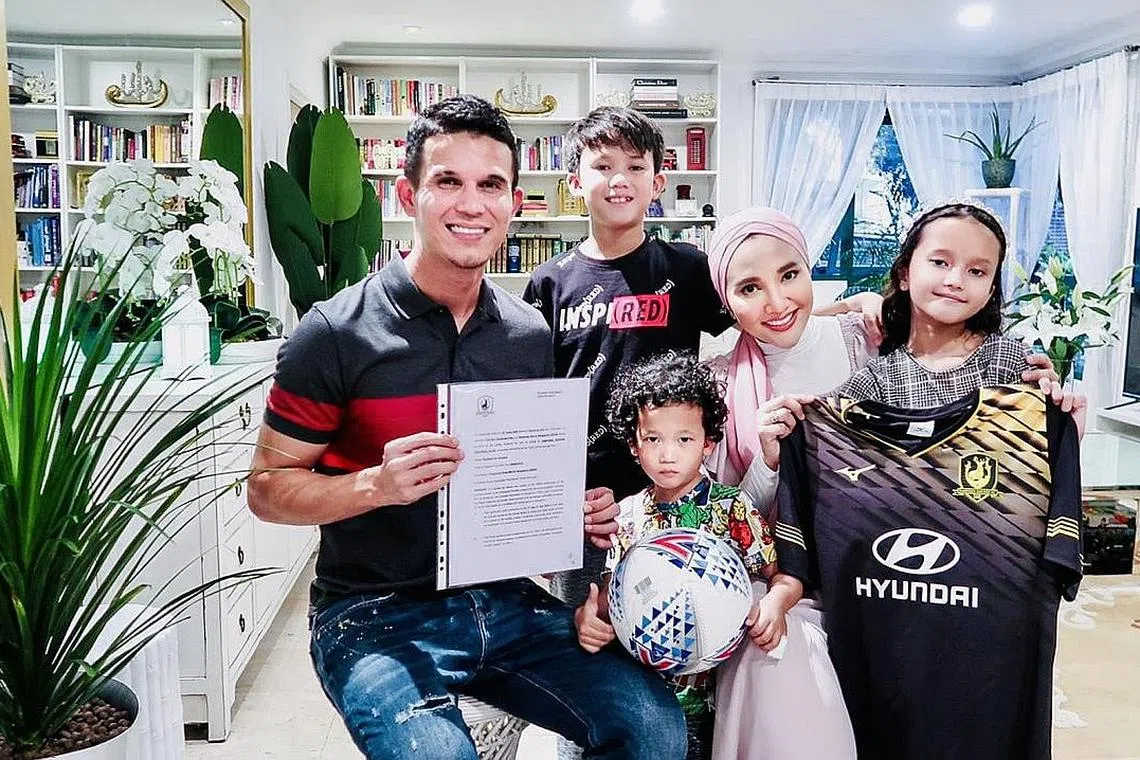LEMBARAN BARU: Baihakki bersama keluarganya selepas beliau bersetuju bermain untuk Tampines Rovers secara percuma sekiranya musim dimula semula, dengan matlamat ditawar kontrak bergaji musim hadapan. - Foto ihsan BAIHAKKI KHAIZAN -