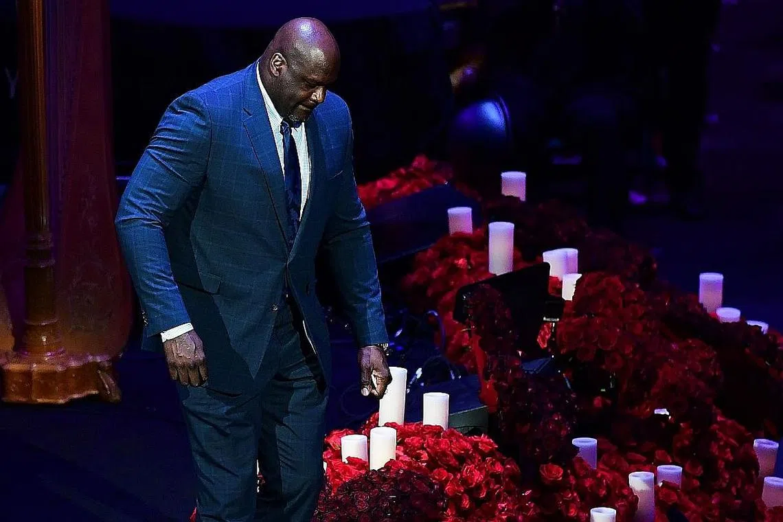 MENGENANG RAKAN SEPERMAINAN: Pemain bola keranjang terkemuka Amerika Syarikat, Shaquille O'Neal, antara mereka yang menghadiri memorial "Perayaan Kehidupan" di Staples Center, tempat di mana Bryant telah berada dalam kerjaya 20 musim dengan Los Angeles Lakers. - Foto AFP -