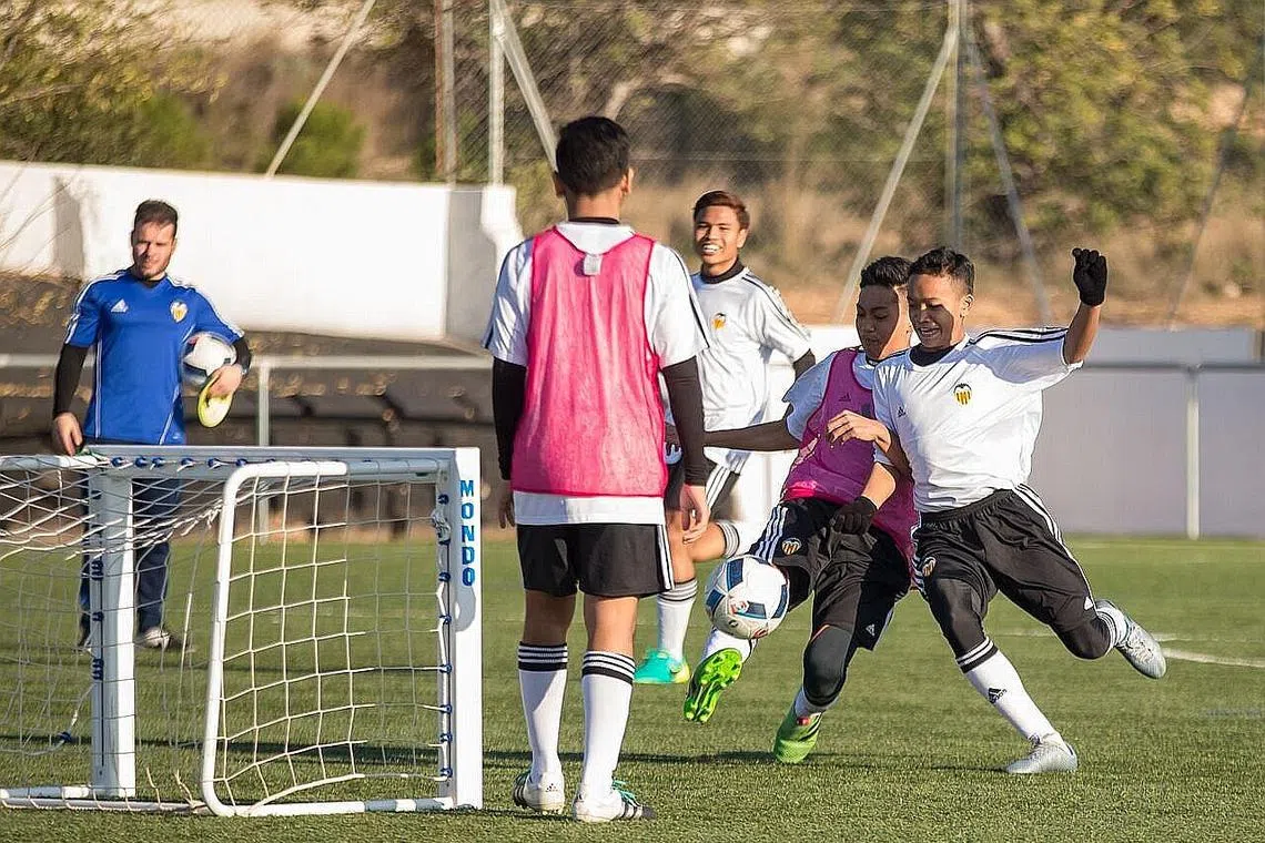 BERLATIH GIGIH: Pelajar-atlit yang dipilih sedang menjalani latihan intensif di Akademi GloVal, Valencia CF sambil dibimbing pelatih berpengalaman kelab itu. - Foto LEO SHENGWEI, SOF -