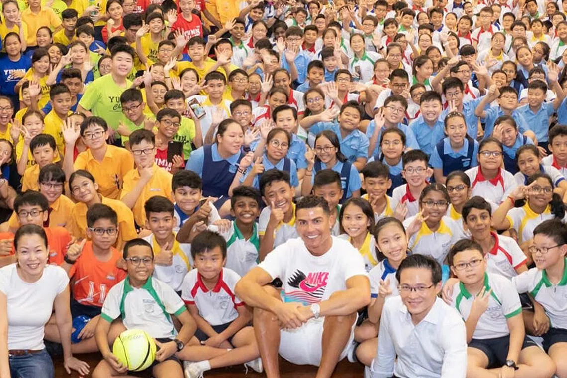 Pada Sabtu, penyerang Portugal itu akan bertemu lebih 1,000 anak muda untuk menyokong Biasiswa Yayasan Olimpik Singapura-Peter Lim.