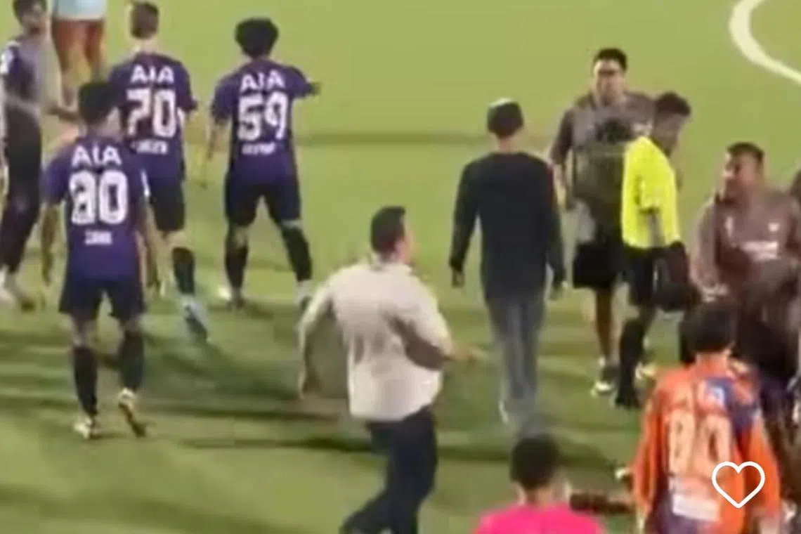 “Dalam pelbagai video yang disiarkan di media sosial, seorang pemain Tanjong Pagar dirakam melemparkan beberapa tumbukan ke arah pihak lawan.