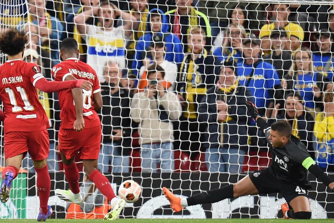 ANFIELD: Ryan Gravenberch menjaringkan gol pertamanya buat Liverpool semasa mereka menewaskan Union Saint-Gilloise dalam Liga Europa.