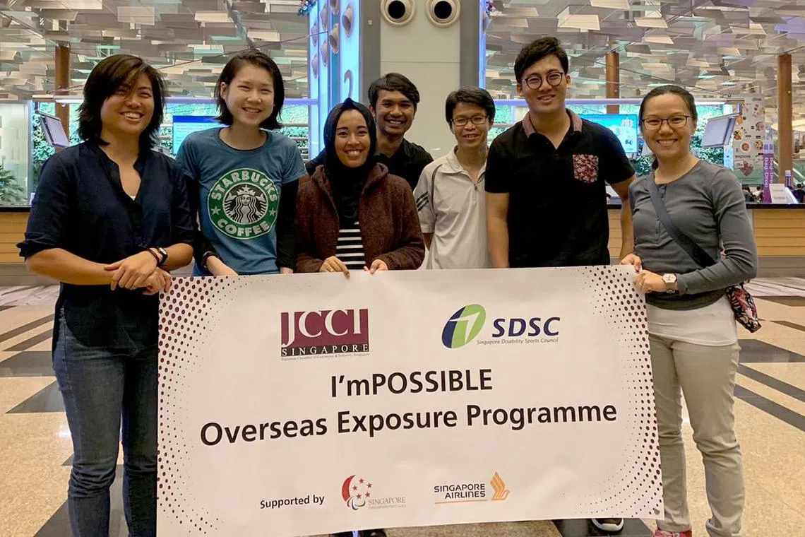 BELAJAR DARI DEKAT: Inilah enam guru (dari kiri) Eunice Aw, Noelle Teh, Nurul Asyikin Shariff, Tan Ban Sun, Daryl Ong dan Phua Ying Li yang berpeluang mengunjungi Jepun minggu lalu bagi mempelajari dari dekat kaedah menjalani latihan bagi golongan berkeperluan khas. Berdiri di belakang ialah pegawai SDSC yang mengiringi mereka ke Jepun, Muhammad Sharizal Hassan. - Foto SDSC -
