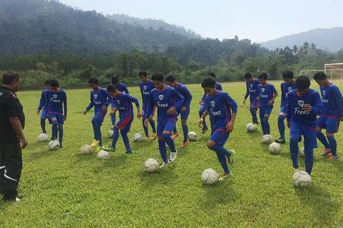 CATAT SEJARAH: Kelab Bola Sepak Frenz United yang dimiliki ahli perniagaan Singapura kini dalam proses dimiliki secara bersama oleh Kelab Bola Sepak Johor Darul Takzim (JDT). Kelihatan beberapa pemain muda menjalani latihan di bawah kendalian Jita Singh. - Foto BERITA HARIAN -