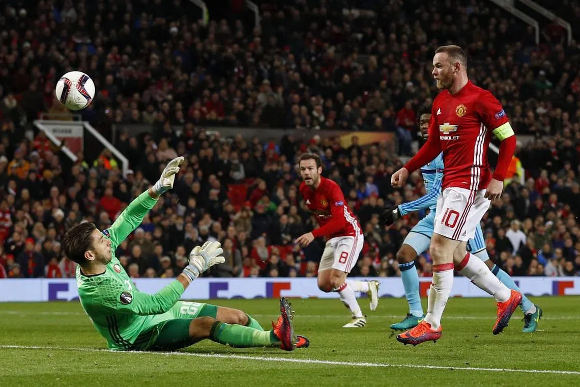 MANCHESTER: Wayne Rooney menjadi penjaring gol utama Manchester United dalam kempen Eropah mereka apabila pasukan Jose Mourinho meningkatkan peluang mereka mara dalam Liga Europa dengan menenggelamkan Feyenoord 4-0 pada Khamis (24 Nov).