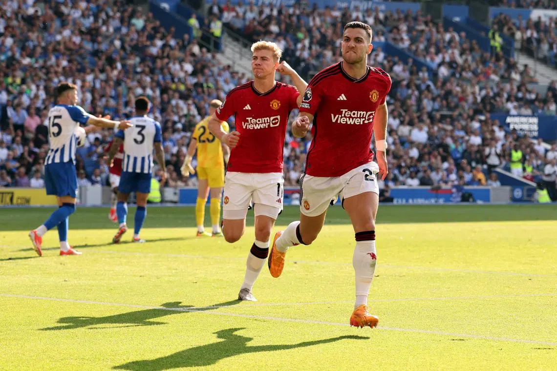 Jaringan Rasmus Hojlund dan Diogo Dalot membantu United menang 2-0 ke atas Brighton.