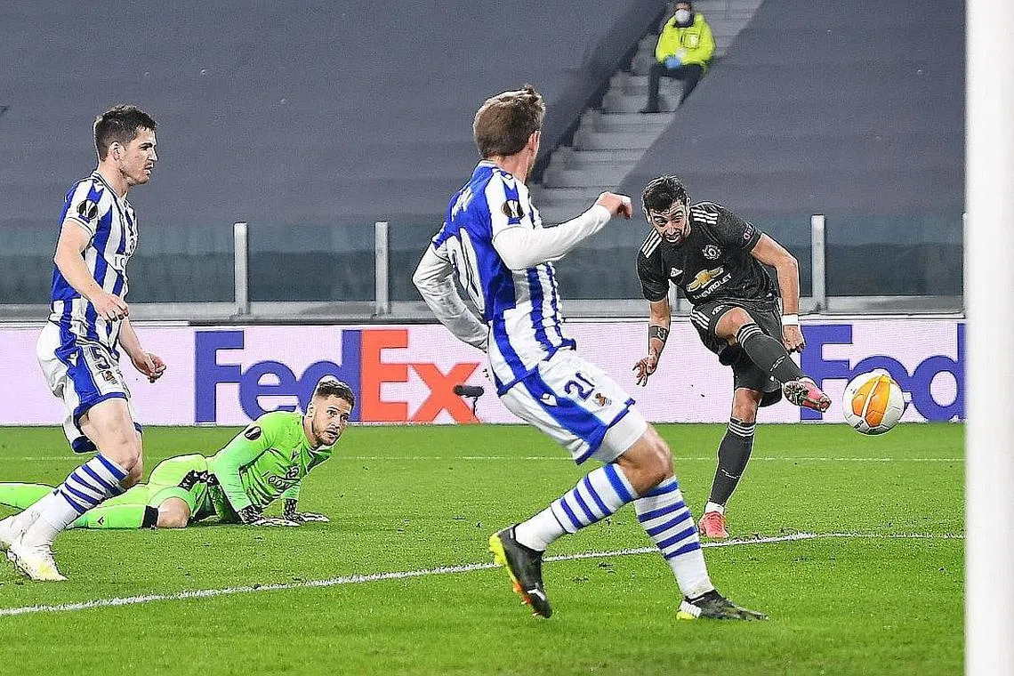 Bruno Fernandes sekali lagi dalam prestasi berinspirasi, menjaringkan dua gol, dengan pasukan Solskjaer menguasai perlawanan sedang Sociedad bermain dengan hambar dalam perlawanan pertama pusingan 32 pasukan terakhir itu.