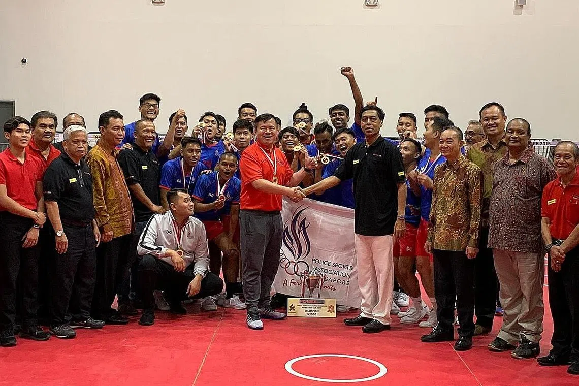 MUNCUL JUARA: Pasukan Polis SA menewaskan pasukan Alipithay ST 2 - 1, sekali gus merebut kejuaraan Liga Perdana 2019. Selain trofi, Polis SA membawa pulang wang tunai $3,000 manakala Alipithay ST pula menerima wang tunai $2,000 dan SK Sepaktakraw $1,000. - Foto PERSES -