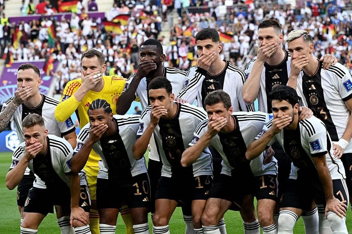 Kesemua kesebelasan utama Jerman melakukan aksi menutup mulut itu semasa sesi bergambar berlangsung.