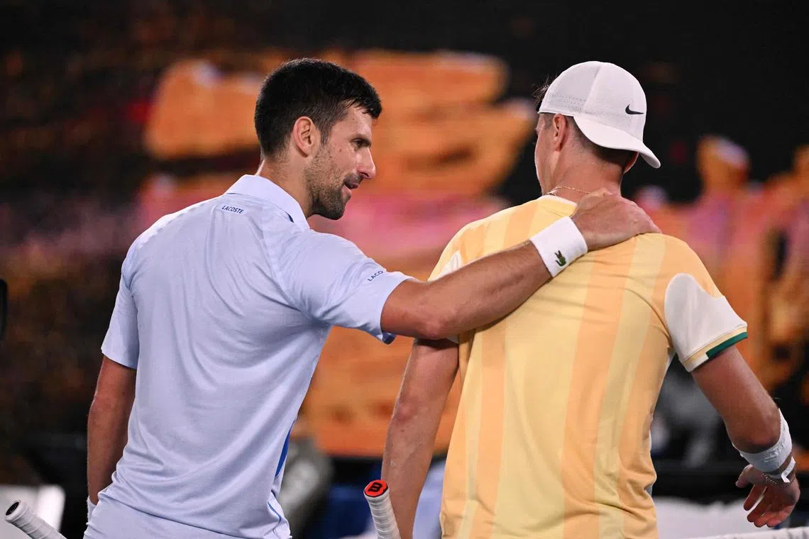 Djokovic perlu bertungkus-lumus dalam perlawanan di Arena Rod Laver untuk menewaskan remaja berusia 18 tahun itu 6-2, 6-7 (5-7), 6-3, 6-4.