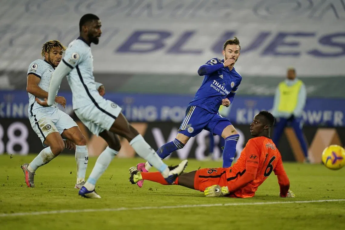 James Maddison membolosi gawang penjaga gol Chelsea Edouard Mendy dengan jaringan 'half-volley' yang tenang setelah hantaran Marc Albrighton 'menemuinya'.
