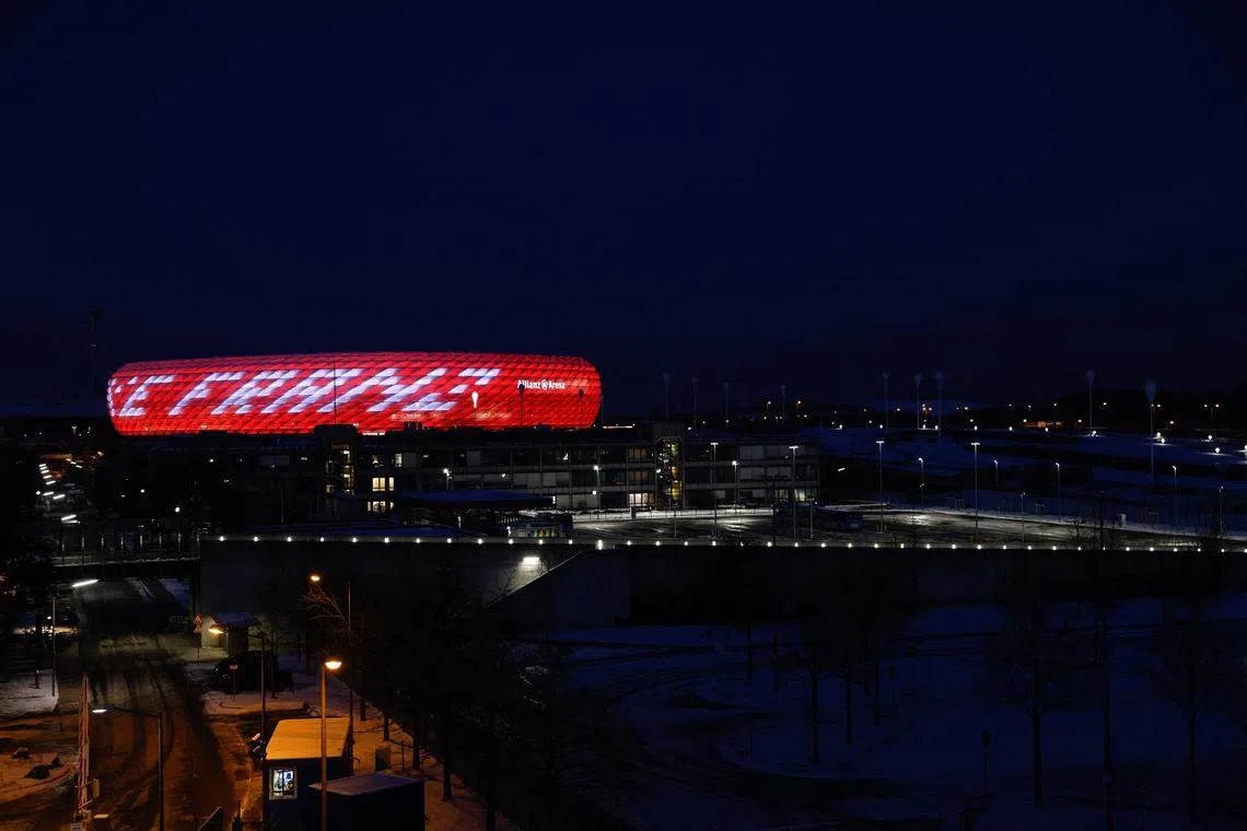 MUNICH: Lampu-lampu di Allianz Arena yang juga merupakan stadium Bayern Munich, telah dinyalakan sebagai penghormatan kepada mendiang bekas pemain dan pengurus kelab bola sepak Jerman, Franz Beckenbauer.