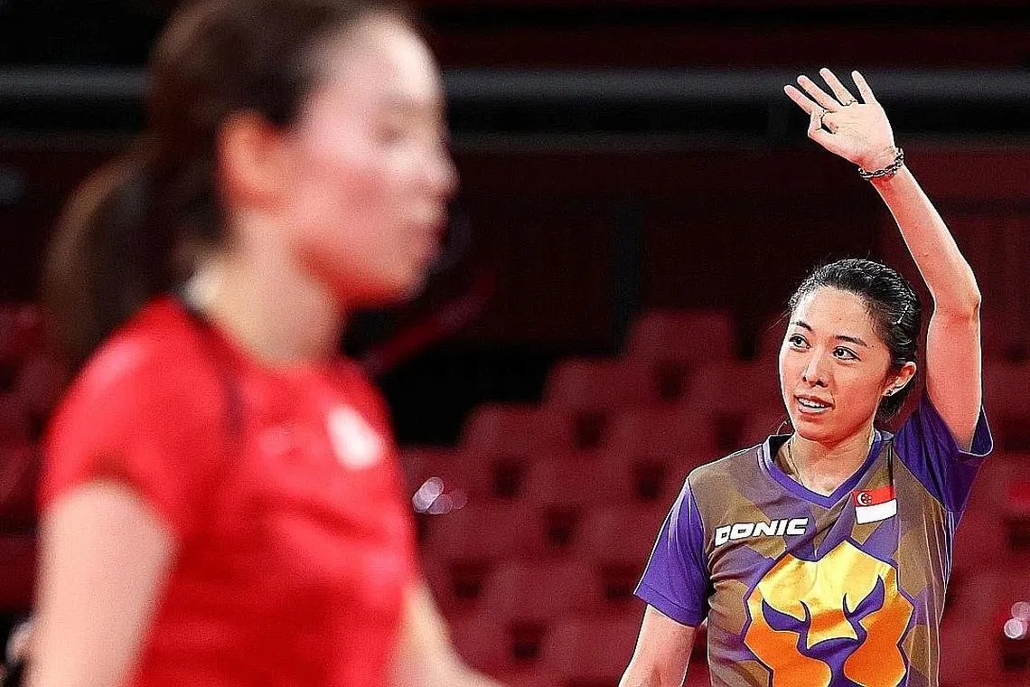 Rakan senegara dan pemenang tiga pingat Sukan Olimpik Feng Tianwei terkandas di pusingan kelompok 16 pesaing kelmarin setelah kalah 4-1 kepada pemain Jerman Han Ying.