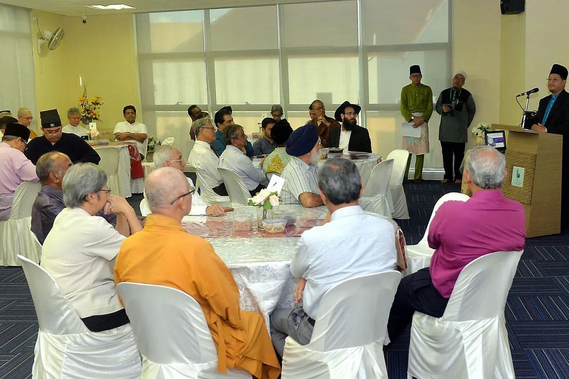 MENJALIN HUBUNGAN MUHIBBAH ANTARA AGAMA: Mufti Dr Mohamed Fatris Bakaram menyampaikan ucapan dalam satu jamuan petang anjurannya sempena Aidilfitri di Pusat Harmoni yang dihadiri pemimpin dan belia daripada pelbagai agama. - Foto-foto fail -