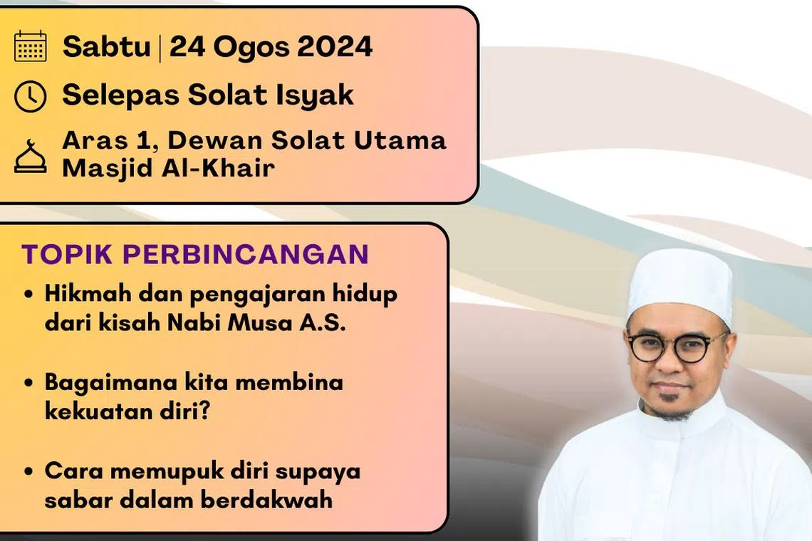 Ikuti yang berbahagia, Ustaz Faizal Wahab, dalam syarahan khas, Siri Ulul Azmi: Nabi Musa as, di Masjid Al-Khair.