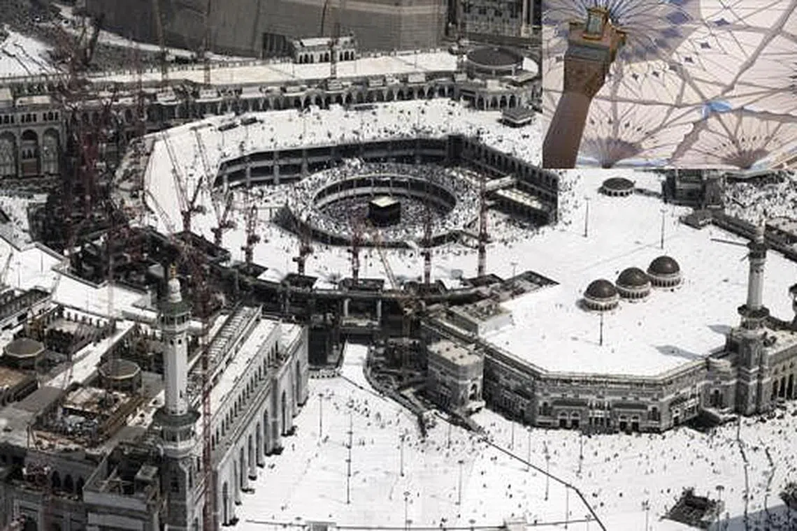 MAKKAH: Dengan suhu Makkah yang antara 38 hingga 41 darjah Celsius setiap hari, pembinaan payung hidraulik merupakan jalan penyelesaian terbaik melindungi lantai marmar daripada cahaya matahari yang terik.