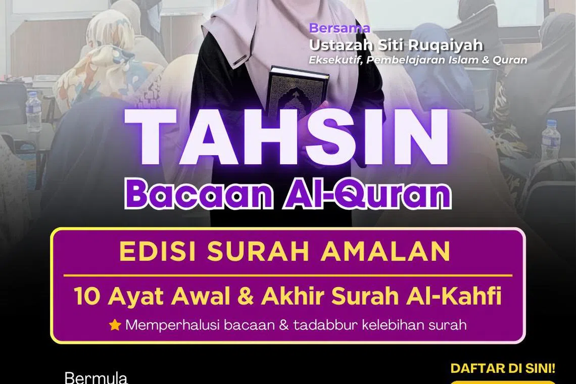 Sertai siri tahsin ini untuk memperhalusi bacaan 10 ayat awal dan akhir surah Al-Kahfi, ayat-ayat amalan yang sering dibaca dalam kehidupan seharian, sambil memahami makna dan ‘tadabbur’ iaitu meneliti dan menghayati kelebihannya. - Foto MASJID AL-KHAIR