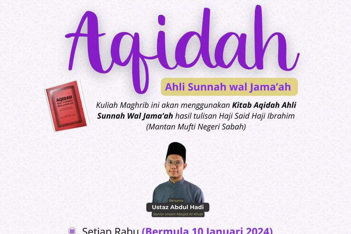 Imam Kanan Masjid Al-Khair, Ustaz Abdul Hadi Jamil, akan menghuraikan kepercayaan ahli sunah wal-jamaah serta keistimewaannya dalam kuliah maghrib di Masjid Al-Khair. - Foto MASJID AL-KHAIR