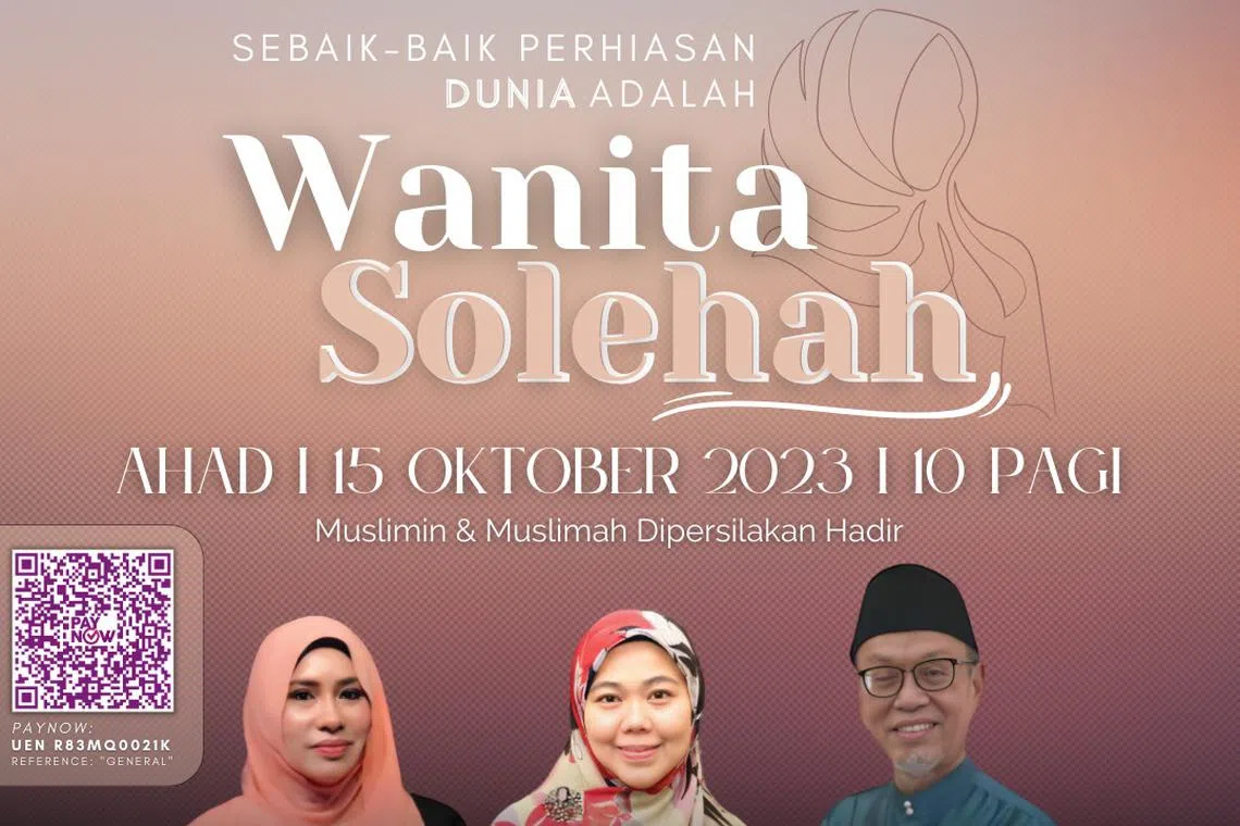 Sebaik-baik perhiasan dunia adalah wanita solehah – demikian tajuk satu forum perdana yang bakal diadakan di Masjid Al-Taqua di Jalal Bilal, Bedok Road, pada Ahad, 15 Oktober.