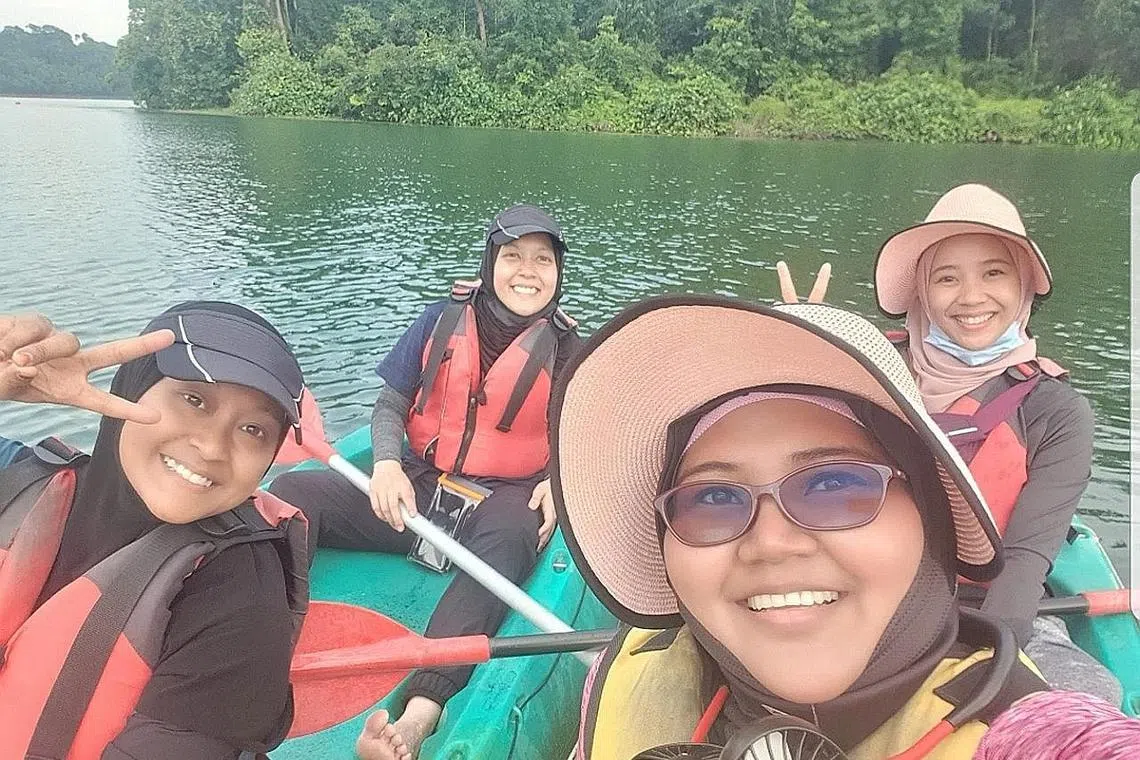 SALING MEMBERI SOKONGAN: Pesakit barah buah dada, Cik Aisha Jiffry (depan, kanan) dengan rakan-rakannya daripada kumpulan #theyoungpinkwarriors, (dari kiri) Cik Eryannie Mohd, Cik Aishah Jamil dan Aisha Alhadad. Mendapat sokongan daripada orang lain terutama pejuang-pejuang yang melalui perjalanan yang sama, membantu mereka dalam menangani emosi menghidap barah buah dada, katanya. - Foto ihsan AISHA JIFFRY -
